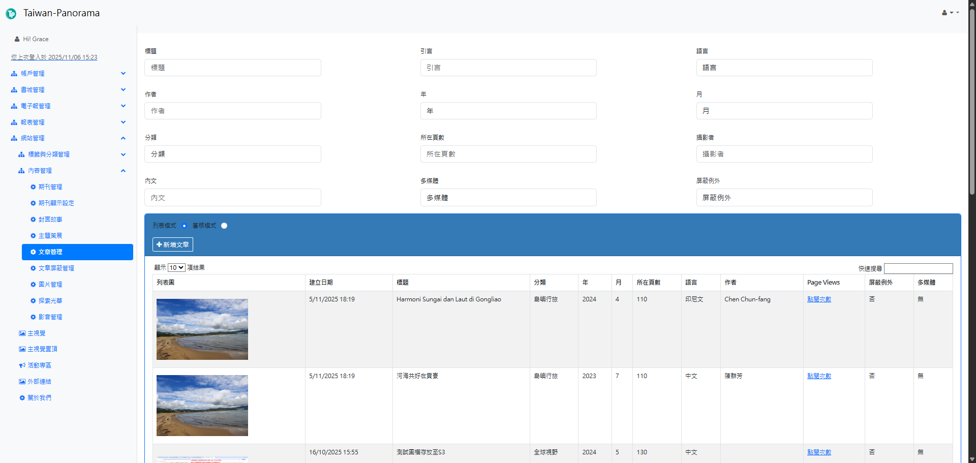 - 期刊與分類管理:完善的期刊化管理介面,方便後台快速更新與查閱。